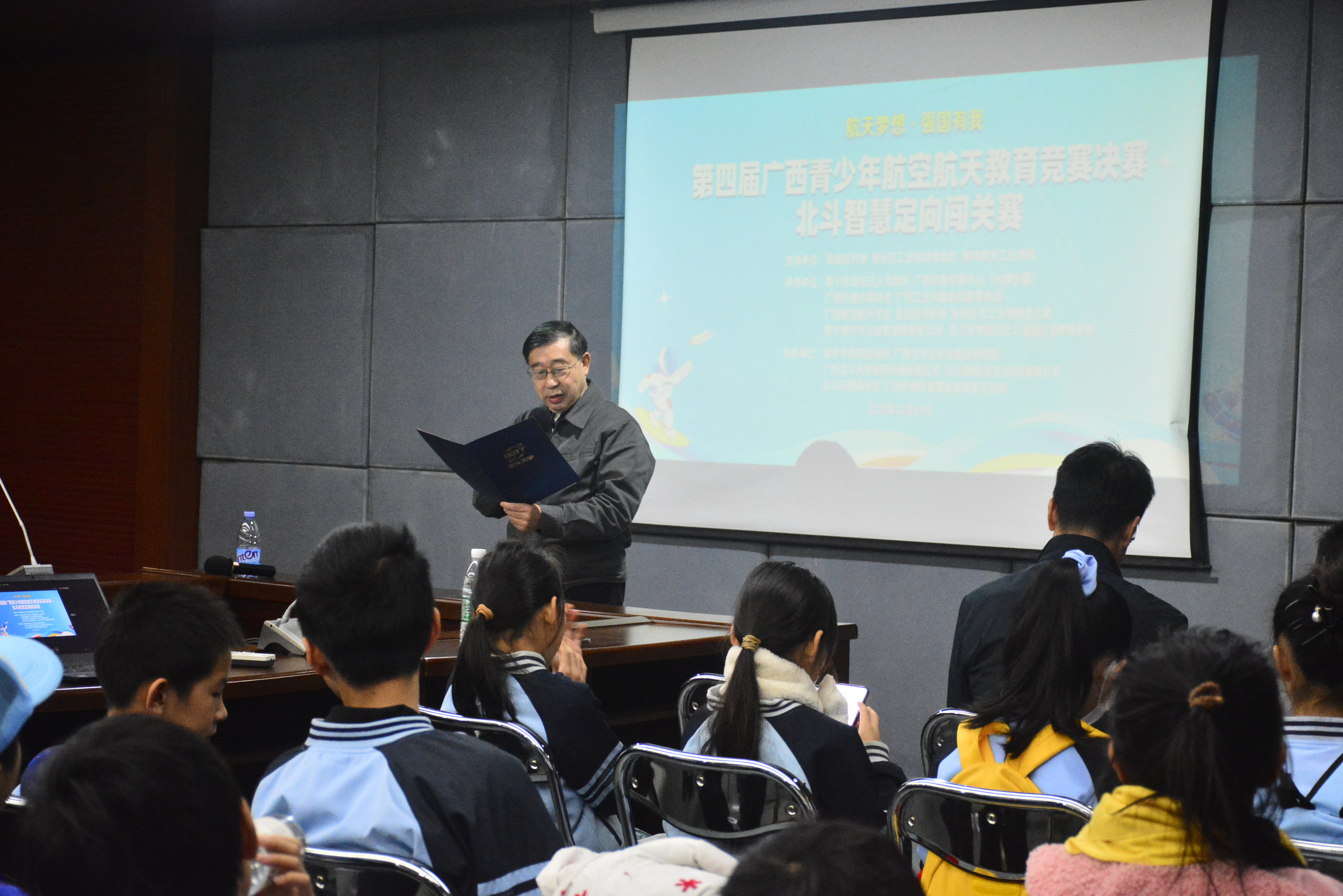 开赛期间,中国卫星导航定位协会武晓淦副秘书长、广西壮族自治区科协科普传播中心副主任阳德林先生、南宁市良庆区科学技术协会主席赵明镜先生、广西北斗天宇航天科技有限公司总经理何梁权先生、副总经理兼北斗基地主任方先敬先生等领导出席此次活动并致辞。